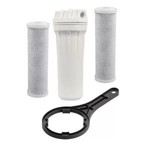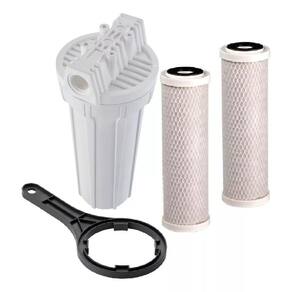 Filtro De Água Para Cavalete Carvão Ativado + Refil Reserva Descrição O Filtro POU Com Refil Carvão Anticloro Rosca 1/2 ou 3/4, possui vazão de 1.200 l/h e vida útil de até 8.000 litros. Projetado para instalação no ponto de uso na redução de resíduos sólidos, metais pesados e redução do cloro, deixando a sua água livre de sabores e cheiros desagradáveis. O design de alta porosidade ajuda a prevenir que o cartucho sature antes que sua capacidade de absorção seja exaurida, maximizando a utilização do carvão enquanto mantém baixa a queda de vazão.