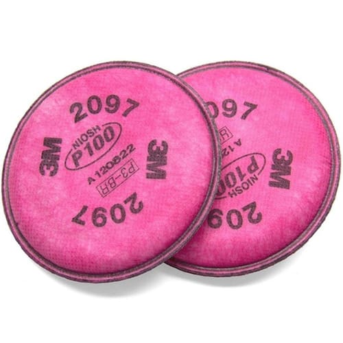 Filtro 3M 2097 P3 Alta Eficiência Filtro combinado para qualquer peça facial com manutenção da linha 3M (6000, 7500, 6800, 7800S e FF-400). Utilize este filtro para proteção contra poeiras tóxicas, como chumbo e amianto, e para a limpeza do molde e remediação, inclui também a maioria dos fumos de solda (metal queimado), poeiras tóxicas como amianto e chumbo, Bondo e partículas criadas por carroçaria. Eles também ajudam pessoas que sofrem de alergias a muitas das poeiras ambientais.