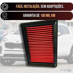 Filtro de Ar Esportivo Kia Sportage 2.0 16v ano 2017 a 2022 A função do filtro de ar esportivo é semelhante a um filtro de ar padrão, porém o diferencial é o alto fluxo de ar, assim seu motor vai admitir mais ar para a câmara de combustão. Proporcionando uma melhor queima de combustível, consequentemente gerando melhor eficiência energética menor consumo de combustível e aumento de potência além é claro de sua vida útil muito superior ao filtro tradicional de 100 mil KM Durabilidade 10x maior que o filtro tradicional Seu motor trabalhando melhor devido ao maior fluxo de ar COMPATÍVEL COM: MAIS DETALHES. - Marca: RS Filter - : 100 Mil Km - Tecnologia de filtragem a seco Não uso óleo para manutenção - Material: 8 micro camadas de poliéster Não usa papel TNT - Lavável e reutilizável - Retém completamente a entrada de poeira ACOMPANHA: - 01 Filtro de ar esportivo - 01 Manual de lavação - 01 Termo de - 01 Chaveiro Premium - 02 Adesivos PERFORMANCE: - O desenvolvimento do filtro esportivo é focado para fornecer um fluxo de ar mais elevado, garantindo maior passagem de ar para o motor. - Ao utilizar o filtro esportivo RS, o seu veículo receberá a melhor tecnologia e performance BENEFÍCIOS: - O grande diferencial é o equilíbrio entre o alto fluxo de ar com excelente filtragem, sendo um item indispensável para quem deseja maior rendimento do combustível SUSTENTÁVEL: PRINCIPAIS PERGUNTAS: P. Necessita adaptação para instalar P. Acusa algum erro no painel do carro P. Qual a condição do produto R. Vendemos somente produtos novos e lacrados Obs: apesar de simples instalação orientamos que a instalação seja feita por um . QUEM SOMOS: - Somos a Storm Parts, trabalhamos com peças automotivas de alta qualidade e com , queremos que você e seu carro tenham a melhor experiência, por isso selecionamos cuidadosamente todos nossos produtos, os produtos da Storm Parts são a melhor opção para quem busca qualidade e confiança a um preço justo. - Tenha tranquilidade de comprar com quem está disposto a oferecer o melhor atendimento, caso precise de ajuda antes ou após a compra, conte com a nossa equipe de atendimento para lhe ajudar. Marca: Não Informado Ean: 7894522912438