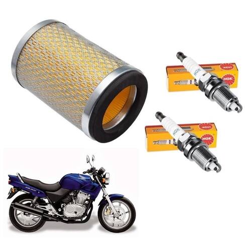 itens inclusos: 01 filtro de ar - 02 velas compativel com: cb 500 para os anos: 1998 - 1999 - 2000 - 2001 - 2002 - 2003 - 2004 - 2005 marca fabricante filtro ar: tecfil marca fabricante vela: ngk modelo filtro ar: arm 438/1 modelo vela: cr8eh-9s