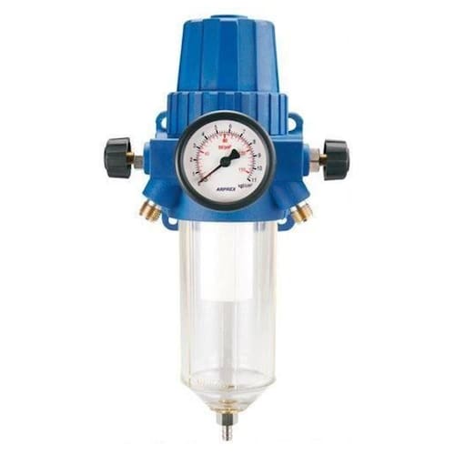 Filtro para ar comprimido com regulador de pressão e duas saídas de 1/4". Utilizado sempre que o ar necessitar ser filtrado e seco, pinturas, limpezas ,