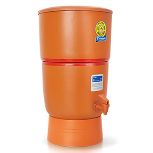Filtro de barro com capacidade de 8 litros, equipado com 3 velas filtrantes. Garante água fresca e saudável, reduzindo impurezas e retendo partículas sólidas.Bica móvel