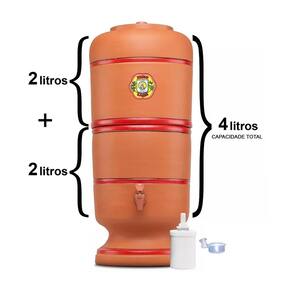 Características: Filtro de barro com capacidade de armazenar 4 litros de água no total sendo 2 litros na parte superior e 2 litros na parte inferior; Durabilidade e qualidade água naturalmente fresca e saudável, feito à mão em argila e reduz impurezas presentes na água; Especificação do Filtro: Produto com certificação INMETRO em purificação. Capacidade: 2 litros por reservatório. Medidas: Altura 40 cm e Diâmetro 16 cm. Peso: aprox. 4 kg. Garantia: 12 meses - Defeito de Fabricação Itens incluso: 01 Manual de uso e montagem produto de fácil montagem . 01 Vela Tradicional vela com porca e arruelas de vedação . 01 Boia para duplicar a capacidade do filtro mantendo os 2 reservatórios sempre cheios. 01 Torneira. 01 Reservatório superior. 01 Reservatório inferior. 01 Tampa. Manutenção: Higienização: usar somente esponja limpa e água. Manutenção das velas: as velas devem ser substituídas a cada 6 meses ou antes dependendo da qualidade da água a ser filtrada. Ean: 7898080080493