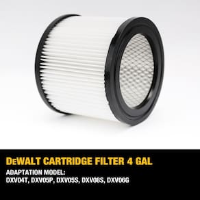 DEWALT Filtro de cartucho DEWALT 4 galhas - Design universal: filtro de cartucho de substituição com tampa. Adequado para aspiradores de pó úmido/seco de 4 galões, compatível com aspirador de pó molhado/seco DEWALT DXV04T, DXV05P, DXV05S, DXV08S, DXV06G - Filtragem potente: o design plissado exclusivo supera as mangas e bolsas tradicionais de modelos mais antigos que fornecem mais área de superfície para melhorar o fluxo de ar e reduzir o entupimento, melhorar a qualidade do ar de forma eficaz - LAVÁVEL E REUTILIZÁVEL: O filtro é feito de material lavável, que pode limpar o pó repetidamente e reduzir bastante o custo do uso. Por favor, enxágue suavemente o filtro com água e deixe secar completamente antes de reinstalá-lo para uso - Instalação simples: este filtro de aspirador de pó pode ser instalado em segundos. Basta tirar o filtro mais antigo e empurrar o novo - O que você recebe: 1 filtro de cartucho DEWALT DXVC4001
