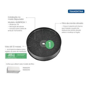 O Filtro de Carvão Ativado Tramontina Ambifresh 1 para Coifa de embutir Incasso 75 Tramontina traz a qualidade que só a Tramotina poderia oferecer. Com tecnologia exclusiva Tramotina, é um produto acima da média do mercado que supre as necessidades na sua cozinha. O filtro Ambifresh 1 garante alta eficiência na remoção de odores e possui vida útil de 12 meses.