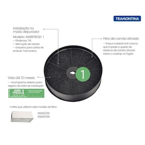 Modelo: Ambifresh 1 - Alta eficiência na remoção de odores, Exclusivo para coifas de embutir, modelos Incasso.Eficiência: 71%Vida útil: 12 mesesPara coifas Tramontina fabricadas no Brasil - exclusivamente para os modelos Incasso 75: 95800/015 95800/016 e 95800/038.Para coifas instaladas no modo depurador.