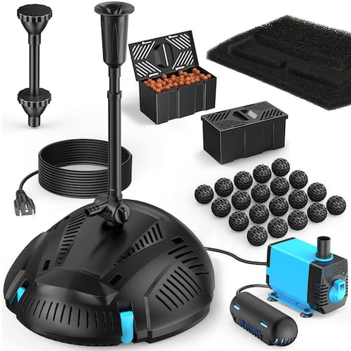 - Sistema de filtragem integrado: o filtro compacto multifuncional combina tudo o que é necessário para manter um lago saudável. Ajuda a manter a água saudável equilibrada e cristalina, protege a bomba de ser entupida com detritos, também protege os peixes do impulsor da bomba. Perfeito para lagos de carpas, pequenos lagos, aquários e jardins aquáticos.