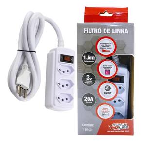 Filtro de Linha 3 Tomadas 20A 1,5m Branco Force Line Bivolt