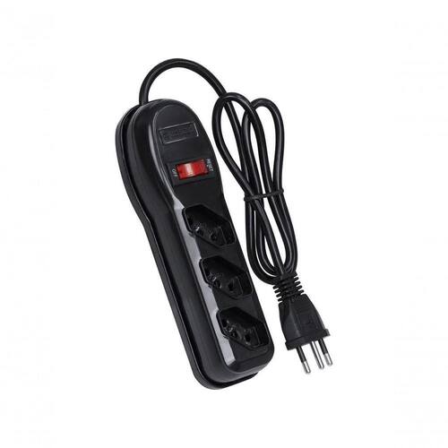 Filtro de Linha 3 Tomadas Pp 0 e 75mm Comprimento 1mt Proteção Contra Sobretensão Preto Vinik