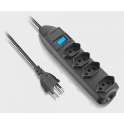 Protetores de linha com chave liga e desliga, fusível e proteção contra surtos.