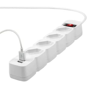 Conectividade! Equipado com varistor contra surtos de tensão e uma chave inteligente tipo disjuntor -circuit breaker-, o filtro de linha protege seus aparelhos contra curto-circuito e sobrecarga, tenha até 4 tomadas para poder conectar, tendo a segurança e a durabilidade dos equipamentos conectados. Tenha até 2 dispositivos conectados via USB, deixando ainda mais versátil sua utilização.