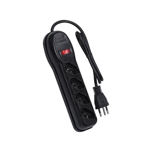 FILTRO DE LINHA 4 TOMADAS PP 0,75MM COMPRIMENTO 1MT Descrição Precisa ligar vários aparelho e tem só uma tomada? O filtro de linha Vinik é uma solução para quem tem vários aparelhos juntos, como: computador, monitor, caixa de som, impressora, modem, switch ou na sala, para TV, home theater, DVD, receptor de TV e dispõe de apenas uma tomada para ligar tudo isso. Possui também botão ON/OFF e conectores com o padrão brasileiro de três pinos, de acordo com a norma NBR 14136. Dados técnicos 4 Tomadas tripolar com Novo padrão Brasileiro (NBR 14136)| Corrente máxima: 10A| Entradas Bivolt: 127/220V| Possui proteção contra sobre tensão| Tensão máxima: 250V~| Certificação: Cabo certificado conforme NBR NM 247-5| Plug e tomada certificados conforme NBR 14136 e NBR NM 60884-1| Cor: Preto| Construção: Condutor: Cobre Nu / PVC| Tomada: Injetada em polipropileno com terminais em latão| Plug: Injetado em PVC com terminais em latão| **Comprimento do produto 1 metro (cabo + filtro de linha)**