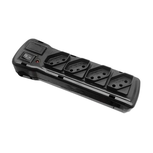 Filtro De Linha com fusível E botão Liga/Desliga 4 Tomadas Preto Filtro de Linha contra interferências com fusível e botão liga/desliga Especificações: Possui pino e tomada 2 polos + terra Potência máxima em : 220 volts = 2200 w 127 volts = 1270 w Cabo de alimentação 2 polos + terra liga e desliga Porta fusível tipo gaveta com um 01 fusível de 10 amperes Composição : Plástico de engenharia e partes condutoras em liga de cobre. Produto não perecível e para uso em locais secos. :