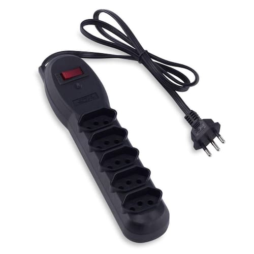 Marca: Force Line Modelo: 0060500116 Cor: Preto - Tomadas: 5 Tomadas - Comprimento do Cabo de Força: 0,8 m - Tensão / Potência: 127/1270W e 220V/2200W - Corrente Máxima: 10A - Cabo: PP - 3x0,75mm - Normas: NBR NM 247-5 - CABO e NBR 14136/2002 - Plugue/Tomada - Gabinete: Plástico PP - Fixação: Com furos para fixação. Pode ser fixado na horizontal ou vertical - Chave: Disjuntor Rearmável 10A com indicador luminoso de funcionamento - Proteção: Sobretensão e Atenua surtos de tensão provenientes de raios e anomalias da rede elétrica, até 125 joules 10/1000s de energia - Função: Filtro de Linha Garante uma energia limpa para os equipamentos, minimizando os harmônicos da rede elétrica