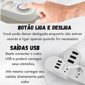 4 tomadas e 3 entradas usb para transformar a maneira como você lida com a energia em sua casa ou escritório. Mantenha-se conectado, seguro e carregado com eficiência.