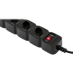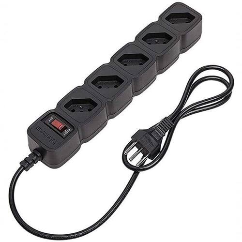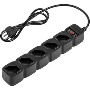 Especificações Técnicas: - Tensão nominal: 100 ~ 240 Vac - Corrente máxima: 10 A* - Potência máxima de operação: 1.270 W (127Vac) e 2.200 W (220 Vac) - Frequência da rede elétrica: 50 ou 60 Hz - Conexão de entrada: Plugue 2P + T (NBR 14136) 10 A - Conexões de saída: 5 tomadas 2P + T (NBR 14136) 10 A - Temperatura de operação: 0 ~ 40 C - Comnto do cabo de força 1 m - Chave liga/desliga: Chave tipo disjuntor rearmável com indicador luminoso de funcionamento