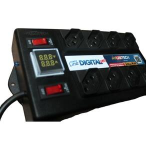 Régua com filtro profissional e protetor integrado. Monitor de tensão e corrente elétrica. Proteja seus equipamentos com filtro de linha power line digital plus