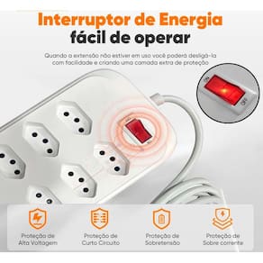 2 metros, proporcionando flexibilidade para alcançar tomadas distantes e organizar seus dispositivos de maneira prática.8 tomadas regulares para conectar diversos aparelhos elétricos simultaneamente.