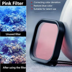 O Filtro vermelho claro ou rosa ajuda você a capturar cores tropicais vibrantes enquanto mergulha. O nosso filtro ajuda a melhorar significativamente as cores subaquáticas ao mergulhar de 2 a 15 pés (0,5 m à 4,5 m) em águas rasas.