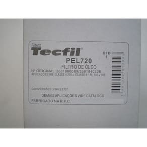 Filtro de óleo Tecfil PEL720 Código (PN) da montadora: Mercedes Benz A2661800109 e Mercedes Benz A2661840325.