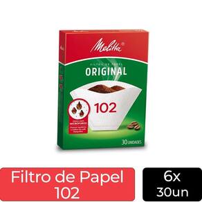 Formato 102, ideal para coadores e cafeteiras de mesmo tamanho Papel de alta resistência, não rompe com facilidade Estrutura porosa que retém o pó, mas deixa passar os sabores Produto biodegradável e descartável Embalagem econômica com 30 unidades Escolha de quem entende de café
