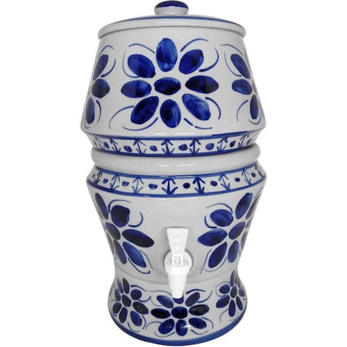 Filtro de água de porcelana com capacidade de 8 litros, design pintado à mão, ideal para água fresca e saudável.Bica móvel