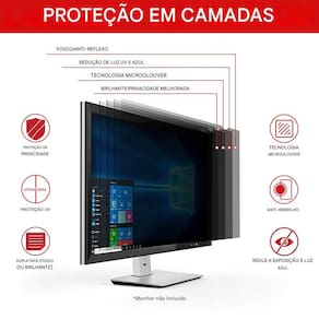 Material: PET de alta qualidadeEspessura: 0,55 mmTransparência: 62%Dureza: 3HCompatibilidade: Laptops, computadores e monitores sensíveis ao toque de diversas marcasDimensões: 21,5 Polegadas com Proporção 16:9Medidas: 47,6cm x 26,8cmGarantia: 3 meses