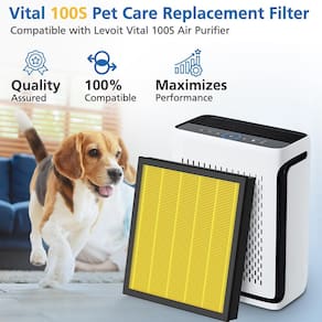 Filtro de substituição Vital 100S Pet Care compatível com purificador de ar LEVOIT Vital 100S, filtro 3 em 1 H13 de carbono ativado HEPA verdadeiro 100S-P, Vital 100S-RF-PA (LRF-V102-YUS), pacote com 2, amarelo - Ajuste perfeito para LEVOIT Vital 100S: nosso filtro de substituição vital 100S de alta qualidade com filtro HEPA verdadeiro H13 de 7,6 a 2,5 cm é perfeitamente compatível com o purificador de ar LEVOIT Smart Vital 100S, Vital 100S-P (não para o creme Vital 100), compare com a peça #Vital 100S-RF. Nosso filtro Vital 100S tem a mesma qualidade e função do autêntico, testamos antes para venda, não se preocupe em comprar - Tecnologia inteligente HEPA atualizada: nosso filtro HEPA verdadeiro 100s H13 usa tecnologia inteligente HEPA atualizada, que pode alcançar um efeito de purificação melhor do que o HEPA geral tradicional. O filtro de substituição HEPA Vital 100S H13 ture pode fixar efetivamente 99,97% de todas as partículas transportadas pelo ar até 0,3 mícrons no ar, como poeira, pelos, pelos de animais de estimação e fiapos, e prolonga a vida útil do filtro HEPA para purificador de ar LEVOIT Vital 100S para manter limpo de poeira, pólen, partículas de fumaça e pelos de animais de estimação - Ideia para famílias com animais de estimação: o filtro vital 100s-p de alta eficiência com camada de filtro de carvão ativado melhora a capacidade do desodorante em 60%, ajuda a reduzir odores desagradáveis e fumos como fumaça, odores de cozinha e odores de animais de estimação, bem como compostos orgânicos voláteis, o que o torna uma boa escolha para casas com animais de estimação, cozinha e fumantes. Reduza todos os odores e gases de sua casa para melhorar a qualidade do ar e sua saúde sem se preocupar com poluição passiva - Filtro econômico: contém 2 pacotes de filtros de substituição de alto desempenho para purificador de ar Levoit Vital 100S, Vital 100S-P. Os filtros de substituição Vital 100S desempenham um papel importante para o purificador de ar, portanto, escolher um filtro de alta qualidade e durável com máxima eficiência pode ajudar você a economizar mais dinheiro. Substitua o filtro HEPA a cada 6 a 12 meses ou dependendo da qualidade do ar e da frequência de uso. Fácil de substituir e instalar sem necessidade de uma ferramenta, traz conveniência e conforto para sua vida - Compre com confiança: valorizamos o atendimento ao cliente e a satisfação. Se você tiver algum problema com o filtro que se ajusta ao seu purificador de ar, . Valorizamos cada cliente, e nossa equipe de pós-venda fornecerá a cada cliente um serviço satisfatório. Filtro feito de papel certificado FSC