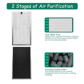 Filtro de reposição Asheviller, compatível com o purificador de ar MA Series 112 V2.0, pré-filtro 3 em 1, filtro H13 True HEPA e filtro de carvão ativado, pacote com 2 - AJUSTE PERFEITO - Filtro de reposição compatível com o purificador de ar MA Série 112 - SISTEMA DE FILTRAGEM DE 3 ESTÁGIOS - O pré-filtro retém grandes poluentes, HEPA H13 para partículas finas e carbono ativo para remover odores. Perfeito para fumantes, donos de animais de estimação, alergias, compostos orgânicos voláteis (VOCs) e cheiros de cozinha - FILTRO HEPA VERDADEIRO - O filtro HEPA verdadeiro de grau H13 ajuda a remover até 99,97% de partículas tão pequenas quanto 0,3 mícrons, como pólen, poeira doméstica, ácaros, esporos de mofo, bactérias, alérgenos, PM2,5, etc. - ALTA EFICIÊNCIA - O pré-filtro retém partículas grandes no ar, como cabelos, animais de estimação pele, pêlos de animais de estimação e muito mais. Os filtros de carbono ativado premium podem absorver com eficiência odores terríveis, incluindo odores de animais de estimação, odores de fumaça, odores de cozinha e VOCs nocivos
