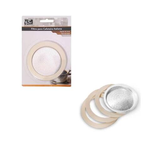 Filtro para cafeteira italiana + 3 borrachas de vedação - ke home Ideal para manter o sabor do seu café sempre fresco e encorpado, este kit é perfeito para quem utiliza cafeteiras italianas. O filtro de inox preserva o aroma do café moka, enquanto as borrachas garantem vedação total, aumentando a durabilidade e o desempenho da sua cafeteira. Características: - compatibilidade: para cafeteiras italianas com capacidade de 3 / 6 / 9 e 12 xícaras escolha a variação - função: filtro em inox que mantém o sabor do café; borrachas que vedam perfeitamente, evitando vazamentos - durabilidade: produzido com materiais resistentes, ideal para uso frequente Especificações: - marca: ke home - material do filtro: aço inox - material das borrachas: borracha resistente Medidas aproximadas: 12 xícaras -diâmetro externo da borracha: 9 cm - diâmetro do filtro: 8,3 cm Conteúdo da embalagem: - 1 filtro de aço inox - 3 borrachas de vedação para cafeteira italiana Dicas de conservação: - lave antes e depois do uso com detergente neutro e esponja macia - evite produtos abrasivos que possam riscar as peças - após a lavagem, seque bem para evitar manchas A dona li utilidades está há mais de 50 anos no mercado, trazendo praticidade e qualidade para o seu dia a dia com produtos selecionados e funcionais. - compra 100% segura e garantida - do vendedor: 7 dias