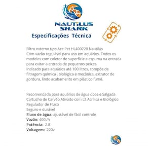 Filtro externo tipo Ace Pet HL400220 Nautilus ;