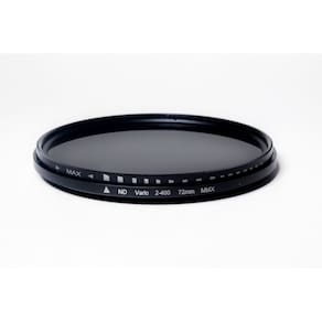 Girando o filtro como um polarizador vai de ND2 a ND400, permitindo longas exposições. O filtro bloqueia a luz incidente entre 1 e 8 pontos ou 1 a 8 f-stops