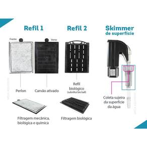 Filtro externo OceanTech HF-600 tipo cascata, hang on, com filtro biológico e skimmer de superfície, para aquário de até 150L com vazão de 650 L/h Os filtros externos hang on da OceanTech linha HF, são ideais para quem busca um equipamento prático, de fácil manutenção, confiável e de ótimo custo-benefício para seu aquário. Seu sistema de filtragem contém sistemas específicos para cada etapa da filtragem: mecânica, química e biológica. : de 1 ano: 3 meses de do vendedor + 9 meses de de fábrica não cobre danos por mau uso. Características: Oceantech HF-600 Tripla filtragem mecânica, biológica e química Elimina odores Design discreto Tampa translúcida fumê Corpo preto fosco Controle de fluxo Espaçador para apoio no vidro do aquário Refil: 1 Refil com perlon e carvão ativado + 1 refil biológico Skimmer de superfície - retira as sujeiras da superfície da água Fácil manutenção - partes desmontáveis Resistente Extremamente silencioso Mídias filtrantes de alta qualidade Refis de fácil Especificações técnicas: HF-600 Potência: 8W Vazão: 650 L/h Capacidade do aquário: Até 150L Tamanho do filtro sem os canos: 20 x 20 x 16,5 cm largura x altura x profundidade Altura total dos canos de entrada: 38 cm Tamanho da área que fica para fora do aquário: 7 cm Tamanho do fio: 1,30 m Tamanho caixa: 20,5 x 21,5 x 15,5 cm largura x altura x profundidade Peso: 1220 g Como usar, montar e ligar filtro externo para aquário: Antes de usar no aquário, passe todas as partes em água corrente Encaixe o cotovelo na bomba Conecte os canos no cotovelo Insira os refis dentro do filtro Posicione o filtro externo no vidro do aquário Coloque água dentro do filtro Após todos os passos indicados, ligue o filtro na tomada. Manutenção filtro externo para aquário: A manutenção do filtro externo OceanTech deve ser realizada uma vez por mês. Antes de iniciar a limpeza do filtro, desligue o filtro da rede elétrica e em seguida retire a água de dentro do filtro. Retire as mídias filtrantes. Passe todas as partes em água corrente, inclusive a bomba e o impeller. Não utilize produtos e materiais abrasivos. Obrigado pela visita e boas compras ATENÇÃO Nossas imagens e textos são registrados e com direito de uso autoral controlado e reservado a essa loja e as lojas parceiras devidamente autorizadas em contrato. Marca: Não Informado