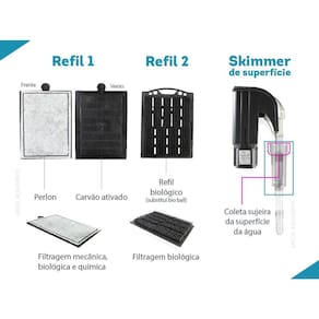 Filtro externo OceanTech HF-600 tipo cascata, hang on, com filtro biológico e skimmer de superfície, para aquário de até 150L com vazão de 650 L/h Os filtros externos hang on da OceanTech linha HF, são ideais para quem busca um equipamento prático, de fácil manutenção, confiável e de ótimo custo-benefício para seu aquário. Seu sistema de filtragem contém sistemas específicos para cada etapa da filtragem: mecânica, química e biológica. : de 1 ano: 3 meses de do vendedor + 9 meses de de fábrica não cobre danos por mau uso. Características: Oceantech HF-600 Tripla filtragem mecânica, biológica e química Elimina odores Design discreto Tampa translúcida fumê Corpo preto fosco Controle de fluxo Espaçador para apoio no vidro do aquário Refil: 1 Refil com perlon e carvão ativado + 1 refil biológico Skimmer de superfície - retira as sujeiras da superfície da água Fácil manutenção - partes desmontáveis Resistente Extremamente silencioso Mídias filtrantes de alta qualidade Refis de fácil Especificações técnicas: HF-600 Potência: 8W Vazão: 650 L/h Capacidade do aquário: Até 150L Tamanho do filtro sem os canos: 20 x 20 x 16,5 cm largura x altura x profundidade Altura total dos canos de entrada: 38 cm Tamanho da área que fica para fora do aquário: 7 cm Tamanho do fio: 1,30 m Tamanho caixa: 20,5 x 21,5 x 15,5 cm largura x altura x profundidade Peso: 1220 g Como usar, montar e ligar filtro externo para aquário: Antes de usar no aquário, passe todas as partes em água corrente Encaixe o cotovelo na bomba Conecte os canos no cotovelo Insira os refis dentro do filtro Posicione o filtro externo no vidro do aquário Coloque água dentro do filtro Após todos os passos indicados, ligue o filtro na tomada. Manutenção filtro externo para aquário: A manutenção do filtro externo OceanTech deve ser realizada uma vez por mês. Antes de iniciar a limpeza do filtro, desligue o filtro da rede elétrica e em seguida retire a água de dentro do filtro. Retire as mídias filtrantes. Passe todas as partes em água corrente, inclusive a bomba e o impeller. Não utilize produtos e materiais abrasivos. Obrigado pela visita e boas compras ATENÇÃO Nossas imagens e textos são registrados e com direito de uso autoral controlado e reservado a essa loja e as lojas parceiras devidamente autorizadas em contrato. Marca: Não Informado