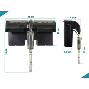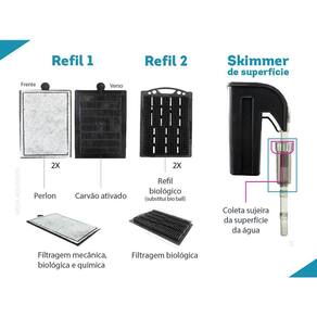 Filtro externo OceanTech HF-800 tipo cascata, hang on, com filtro biológico, para aquário de até 250L com vazão de 900 L/h Os filtros externos hang on da OceanTech linha HF, são ideais para quem busca um equipamento prático, de fácil manutenção, confiável e de ótimo custo-benefício para seu aquário. Seu sistema de filtragem contém sistemas específicos para cada etapa da filtragem: mecânica, química e biológica. Características: HF-800 Tripla filtragem mecânica, biológica e química Elimina odores Design discreto Tampa translúcida fumê Corpo preto fosco Controle de fluxo Espaçador para apoio no vidro do aquário Refil: 2 Refis com perlon e carvão ativado + 2 refis biológicos Fácil manutenção - partes desmontáveis Resistente Extremamente silencioso Mídias filtrantes de alta qualidade Refis de fácil Especificações técnicas: Filtro OceanTech HF-800 Tampa translúcida fumê Corpo preto fosco Controle de fluxo Espaçador Tubo telescópico Surface Skimmer Refil: 2 Refis com perlon e carvão ativado + 2 refis biológico Potência: 9W Vazão: 900 L/h Capacidade do aquário: Até 250L Tamanho do filtro sem os canos: 35,5 x 20 x 17 cm largura x altura x profundidade Altura total dos canos de entrada: 35 cm Tamanho da área que fica para fora do aquário: 8 cm Tamanho do fio: 1,30 m Tamanho caixa: 36 x 22 x 16 cm largura x altura x profundidade Peso: 1890g Como usar, montar e ligar filtro externo para aquário: Antes de usar no aquário, passe todas as partes em água corrente Encaixe o cotovelo na bomba Conecte os canos no cotovelo Insira os refis dentro do filtro Posicione o filtro externo no vidro do aquário Coloque água dentro do filtro Após todos os passos indicados, ligue o filtro na tomada. Manutenção filtro externo para aquário: A manutenção do filtro externo OceanTech deve ser realizada uma vez por mês. Antes de iniciar a limpeza do filtro, desligue o filtro da rede elétrica e em seguida retire a água de dentro do filtro. Retire as mídias filtrantes. Passe todas as partes em água corrente, inclusive a bomba e o impeller. Não utilize produtos e materiais abrasivos. Já vem com refil Sim, as mídias já acompanham o produto. O produto é novo Obrigado pela visita e boas compras ATENÇÃO Nossas imagens e textos são registrados e com direito de uso autoral controlado e reservado a essa loja e as lojas parceiras devidamente autorizadas em contrato.