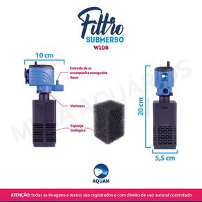 O filtro interno submerso Aquam W108, é ideal para quem busca um equipamento prático, de fácil manutenção, confiável e de ótimo custo-benefício, possui entrada de mangueira de ar para auxílio na oxigenação da água, realiza dois tipos de filtragem, biológica e mecânica. Características: Baixo consumo de energia Baixo ruído Entrada de ar para mangueira de 4mm Fácil instalação e manutenção Filtragem mecânica e biológica Filtro esponja propicia o crescimento de bactérias para filtragem biológica e mecânica Possui ventosas para fixação Esponjas de fácil O filtro necessita ficar totalmente submerso Tomada padrão 2 pinos Serve para aquário marinho e de água doce Especificações técnica: Marca: Aquam Modelo: W108 Potência: 20W Voltagem: escolha a voltagem no botão do anúncio Vazão: 1500L/h Indicado para aquários de até: 300L Medidas: 5,5 x 20 x 10cm larg x alt x profundidade Tamanho do fio: 140cm Peso: 397g Dicas importantes: Antes do primeiro uso, passe o filtro e as mídias em água corrente para retirar resíduos de fábrica. Realize a manutenção do filtro a cada 7 dias para manter a eficiência na filtragem. Limpe todas as partes da bomba, do filtro e das mídias em água corrente, não utilize produtos químicos. Não estique o fio até a tomada, deixe sempre uma folga, formando uma barriga no fio, assim, caso escorra água pelo fio, não corre o risco de a água chegar até a tomada. Obrigado pela visita e boas compras ATENÇÃO Nossas imagens e textos são registrados e com direito de uso autoral controlado e reservado a essa loja e as lojas parceiras devidamente autorizadas em contrato. Marca: Não Informado Ean: 7793300911529