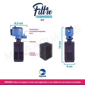 O filtro interno submerso Aquam W7 é ideal para quem busca um equipamento prático, de fácil manutenção, confiável e de ótimo custo-benefício, possui entrada de mangueira de ar para auxílio na oxigenação da água, realiza dois tipos de filtragem, biológica e mecânica.