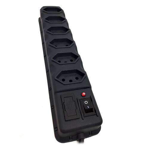 Potência máxima: 300w em 127v ou 500w em 220v Corrente máxima: 3a / 250v 6 tomadas Tamanho do cabo: aprox. 85cm Cor: preto Botão liga-desliga led indicador
