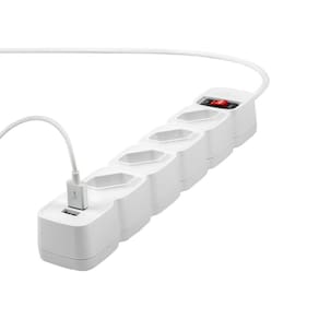 Filtro Linha Protetor Eletronico com 4 Tomadas E2 USB Branco EPE 204 USB Intelbras CONTÉM:- 1 Filtro Linha Protetor Eletronico com 4 Tomadas E2 USB Branco EPE204 USB Intelbras DETALHES:- Tensão nominal: 100-240Vac Bivolt automático - Corrente máxima: 10A- Potência máxima de operação: 1270W 127V e 2200W 220V - Frequência da rede elétrica: 50-60Hz- Conexão de entrada: Plugue 2P+T NB 14136 10A- Comprimento do cabo de força: 1 metro- Chave inteligente com indicador luminoso de funcionamento- Tecnologia de proteção: Varistor contra surtos de tensão- Chave inteligente tipo disjuntor circuit breaker , proteção contra curto-circuito e sobrecarga- Máxima absorção de energia: 125Jaules- Garantia: 1 ano- Freqência de operação: 50-60Hz- Cor: Branco- Comprimento do produto: 10,4 cm- Largura do produto: 4,4 cm- Altura do produto: 36,2 cm- Peso do produto: 0,270 kg- Numero de tomadas: CARACTERÍSTICAS:- O protetor eletrônico EPE 204 USB tem 4 tomadas e 2 portas USB para conectar e carregar seus dispositivos sem preocupações. - Ele está disponível na cor preta ou branca, e com 1 ou 3 metros de cabo. - Além disso, o EPE tem dupla proteção com chave inteligente contra curto-circuito e sobrecarga, e varistor contra surtos de tensão- Dupla proteção com chave inteligente contra curto-circuito e sobrecarga, e varistor contra surtos de tensão- Com 4 tomadas em disposição diagonal, o EPE 204 USB facilita a conexão de plugues que ocupam mais espaço.- O EPE 204 USB tem duas portas USB para que você conecte e carregue facilmente seus dispositivos, como smartphones, tablets ou caixas de som.- O EPE 204 USB está disponível em versões com 1 ou 3 metros de cabo, para facilitar a conexão de equipamentos a maiores distâncias das tomadas.- O bivolt automático possibilita conexões mais seguras e sem preocupações com a tensão que a rede elétrica entrega.