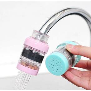 Lave frutas e legumes com água filtrada ou use para consumo. Esse mini filtro usa dupla filtragem com metais magnéticos e pedras Maifan.Serve em todas saídas de torneira padrão, fácil instalação, sem ferramentas, faça você mesmo.Recomendação de instalação:Ferva um pouco de água, coloque a parte transparente de silicone na água quente, deixe alguns segundos até amolecer. Encaixe na torneira , em instantes o silicone esfria e endurece, é só ajustar. Para retirar faça a mesma coisa, jogue água quente na parte superior e espere amolecer e então retire da torneira.Os elementos filtrantes podem ser lavados e reutilizados.Especificação:Cor: azul.Dimensões: Comprimento 7 cm, diâmetro 4,5 cm.Material: plástico, metal e pedra.Peso: 80 g.Modelo: FAUCET