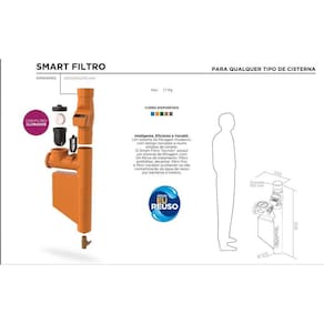 Filtro Para Coleta De Água Da Chuva Smart Filtro- Cinza Escuro Compatibilidades/ aplicações: Aplicável para uso em residências, pequenas empresas, condimínios, indústria, etc... Detalhes do produto O smart filtro tecnotri possuí um sistema de filtragem, com 04 filtros de tratamento. Filtro anti-folhas, decanter, filtro fino e filtro clorador auxiliando na não contaminação da água de reúso por bactérias e insetos.O smart filtro tecnotri é uma excelente solução para filtragem da água nos sistemas de captação e armazenamento de água da chuva.Sistema de filtragem compacto, fácil de instalar e que se adapta a qualquer modelo de cisterna. Ideal para sistemas de captação e armazenamento de água da chuva. São 4 filtros de tratamento, filtro antifolhas, decanter 8 litros, filtro fino e filtro clorador. Protege a cisterna contra o mosquito da dengue, germes e bactérias. Smart filtro tecnotri reservatório 8 litros Sistema com filtro anti-folhas e cloradorUm sistema de filtragem moderno, com design inovador e muito simples de instalar. Ideal para uso em cisternas, sistemas de captação de água das chuvas e kits reúso de água.Pastilha de cloro não incluída. Detalhes técnicos Marca: tecnotriCódigo: gbf6475tn cinza Peso: 2,5 kgCapacidade decanter: 8 litrosEntrada/ saída: 100 mmÁrea atendida: 100 m Dimensões Altura: 90,0 cmLargura: 34,0 cmProfundidade: 24,0 cm