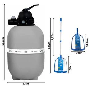 Além do filtro GRE, o conjunto pode ser complementado com a Peneira Cata Folhas com Cabo Telescópico T153 da FLUIDRA, que facilita a remoção de folhas e sujeiras da superfície da piscina. Seu cabo telescópico em alumínio garante leveza, resistência e alcance, sendo uma ferramenta prática para a manutenção diária.