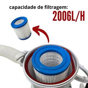 Este filtro irá garantir que sua piscina mantenha a água cristalina e sempre limpinha de maneira fácil e conveniente, garantindo uma durabilidade maior. Filtro recomendado para piscinas desmontáveis