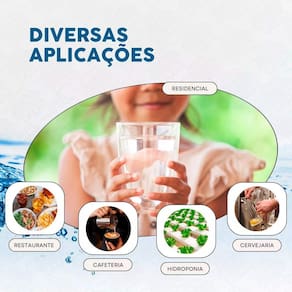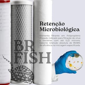 Filtro purificador de água com 3 estágios de filtragem, retém partículas, cloro, gostos, odores, vírus e bactérias. Ideal para uso doméstico e industrial.Estágios de filtragem