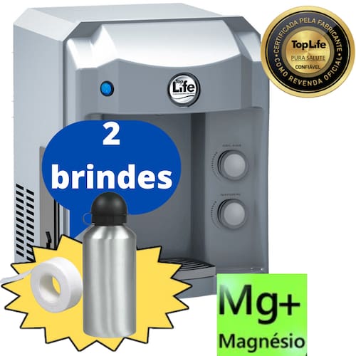 Filtro Purificador Água Gelada e Natural Super Alcalina Ionizada e Ozônio c/ minerais e Magnésio Mg+ - Top Life - Cor: Prata / Voltagem: 127