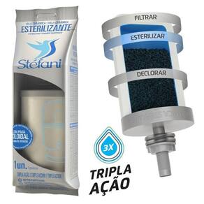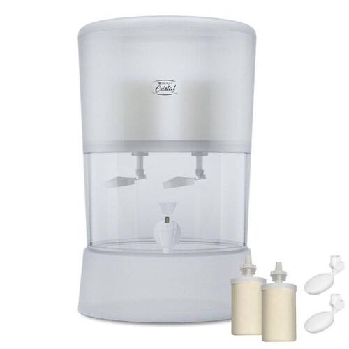 Filtro Purificador de Água Stéfani Cristal 8 LitrosCaracterísticas:O Filtro Stéfani Cristal Plus faz parte de uma nova geração de filtros, com harmonia, transparência e praticidade para todos os ambientes. Ele é equipado com a Vela Stéfani Esterilizante, que retira cloro da água, elimina bactéria e retém partículas sólidas e impurezas 1.000 vezes menores que um grão de areia.Além de combinar e enfeitar os mais variados ambientes, é ideal para quem quer ter água pura e saudável a todo momento. É desmontável e extremamente leve, sua caixa compacta e resistente facilita seu transporte, tornando-o ideal para ser levado em viagens.- Transparência que permite a visualização da água. Leve e fácil de manusear.- Compacto, ocupa pouco espaço.- Moderno e diferenciado.Equipado com: 2 boias e 2 velas tripla ação.Capacidade: 8 litros por reservatório.Medidas:Altura 46,5 cmDiâmetro: 30 cmPeso: 2,5 kg