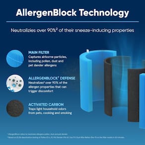 BLUEAIR Filtro AllergenBlock da série Blue Pure 311i Max, filtro de substituição genuíno para alergias, pólen, poeira, pelos de animais, serve para purificador de ar Blue Pure 311i Max - Aumenta a proteção contra alérgenos: a camada de defesa AllergenBlock neutraliza mais de 90% das propriedades alérgenas, como poeira indutora de espirros, pólen e pelos de animais que podem desencadear desconforto* - Atualize suas defesas: o filtro Blueair AllergenBlock série 311i Max Blue Pure é projetado para um desempenho ideal; compatível com purificador de ar 311i Max e 311i+Max* - ALERGÊNIOS INDUZIDORES DE SNEEZE: Quatro camadas de filtragem de purificador de ar; a camada de defesa AllergenBlock neutraliza mais de 90% do pólen, poeira e pelos de animais no filtro Blueair ; a camada de carbono reduz os odores domésticos leves* - Substituição automática do filtro: Assine e economize até 10% em filtros entregues automaticamente quando a substituição for necessária; quando utilizado 24 horas por dia, seu filtro Blueair deve ser substituído a cada 6 meses para reduzir efetivamente poluentes e alérgenos transportados pelo ar