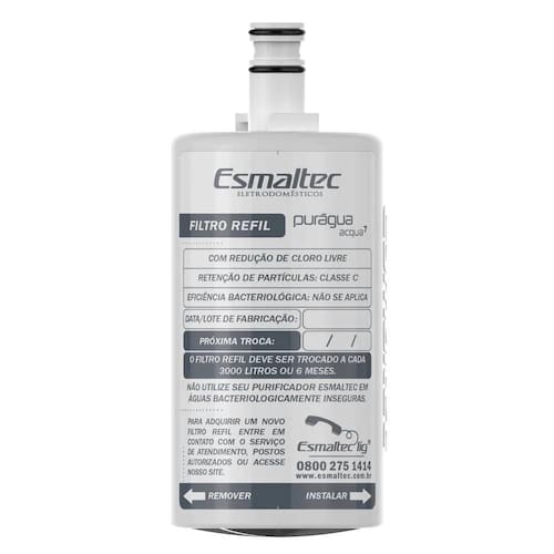 Filtro purificador para bebedouro esmaltec acqua 7 Filtro purificador para bebedouro esmaltec acqua 7 Filtro para purificador esmaltec acqua 7 Filtro refil para o produto purágua acqua Temperatura de trabalho 3c a 40c Vazão recomendada 60k/h Pressão de trabalho 40kpa 4 m.C.A. à 400kpa 40 m.C.A. Vida útil do filtro em uso 6 meses ou 3000l Retenção de particulas Classe: Com redução de cloro livre Eficiência bacteriológica não se aplica Conforme norma nbr 16096 Produto esmaltec Marca: Não Informado