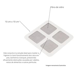 Filtro ralo kit 6 pcs fibra de vidro 10x10x0,01cm - clink Filtro ralo kit 6 pcs fibra de vidro 10x10x0,01cm - clink Garanta a proteção e a limpeza dos seus ralos com o filtro ralo kit 6 peças da marca clink, fabricado em fibra de vidro resistente para evitar entupimentos. Este conjunto é a solução ideal para manter a higiene e o bom funcionamento dos ralos em pias, banheiros e tanques, prevenindo eficazmente obstruções causadas por cabelos, restos de alimentos e outras partículas. Com dimensões compactas de 10 cm x 10 cm x 0,01 cm, os filtros se adaptam facilmente à maioria dos ralos residenciais e comerciais. Além de proporcionar uma filtragem eficiente, o material de alta qualidade garante durabilidade e praticidade na manutenção do seu lar ou ambiente .