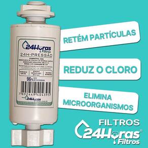 Filtro Refil Bebedouro Pressão Coluna Bag Compatível Purestil Begel Filtro Refil Filtro Interno 24H-PRESSAO compatível com Bebedouro Purificador Purestil Begel Modelos Antigos Compatível com as marcas abaixo e diversas outras marcas: - Refil compatível com Purificadores - Purestil; - Stille; - Bebedouro BRX - entre muitas outras. Informações Adicionais: - Elimina odores - Elimina sabores desagradáveis - Retém partículas barro, areia, ferrugem, sedimentos e partículas menores - Reduz cloro - Bacteriostático controla a proliferação de bactérias - Produto a ser utilizado com água potável - Composição básica: Polipropileno e Carvão - Troca Rápida e Fácil - De um lado tem rosca de 1/2 com porca travante - Do outro, encaixe de 1/4 para tubo ou mangueira - Filtro deve ser trocado de 6 a 6 meses, conforme manual do aparelho - O filtro elimina: Cloro, Gostos, Cheiros, Partículas Sólidas e ajuda a Elevar o pH. As marcas e produtos citados e ilustrados são propriedades de seus respectivos fabricantes e aparecem apenas para demonstrar a compatibilidade deste produto. --------------------------------------------------------------------------- Marca: 24 Horas Filtros Eficiência da retenção de partículas: Classe III Eficiência da redução de Cloro livre: Aprovado Eficácia Anti-Microbiana 96%: Aprovado Produto de acordo com a norma ABNT NBT 16098:2012. Elemento filtrando destinado ao uso em água que atenda a portaria N 2.914 do Ministério da Saúde. Marca: Não Informado